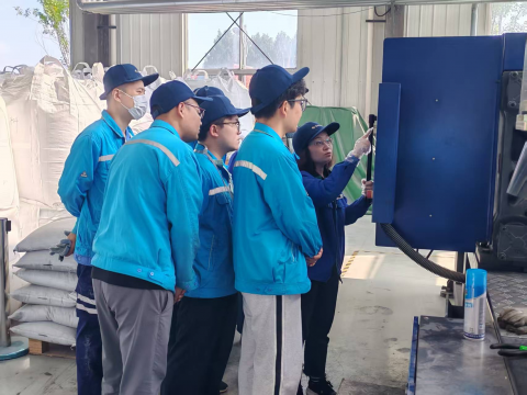 研發中心生產基地坐落于濟寧市鄒城市太平煤礦,生產車間面積6000平方米,配備錐形雙螺桿混煉擠出線、雙 桿雙階混煉擠出線等數條全自動化生產線,可實現原料輸送、稱量、上料、混合、篩選、包裝等系列工序全自動化完 具有工藝先進、產品質量穩定等特點,年產石墨烯高分子復合材料萬余噸。 成, 另外,生產基地還配備多套配方研發中試驗證設備,可實現研發中心科技成果高效率產業化。